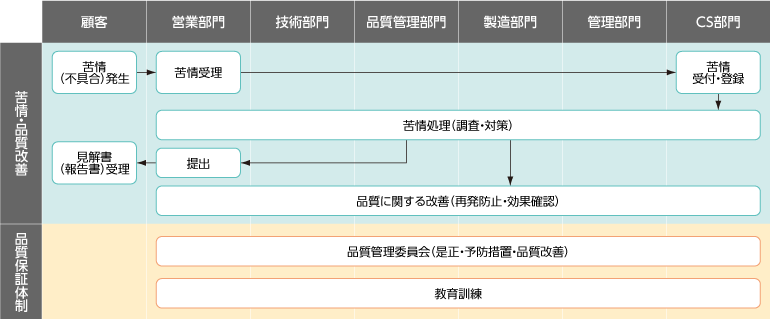品質體系図「苦情処理~品質保証體制」