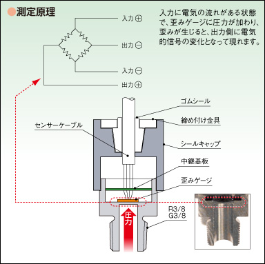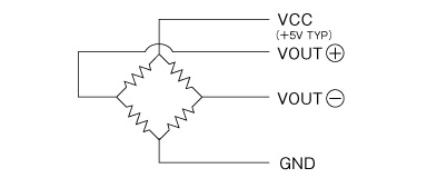 左圖所示的電阻橋粘貼在受壓部的金屬膜片的背面,將因壓力而變化的金屬膜片的變形量檢測(cè)為電壓變化。