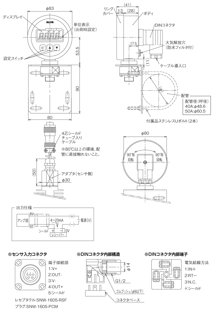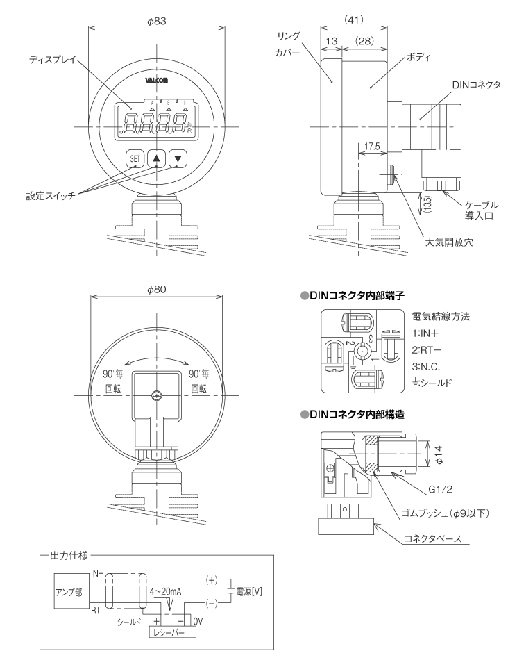 | A6VB | 4~20mA(2線式) 出力スケーリング可変式 応答性:ダンピング(ソフトフィルタ)初期設定2秒(0.5Hz) 表示部 バックライト付 許容負荷抵抗:電源電圧DC24V時380Ωmax. | |||