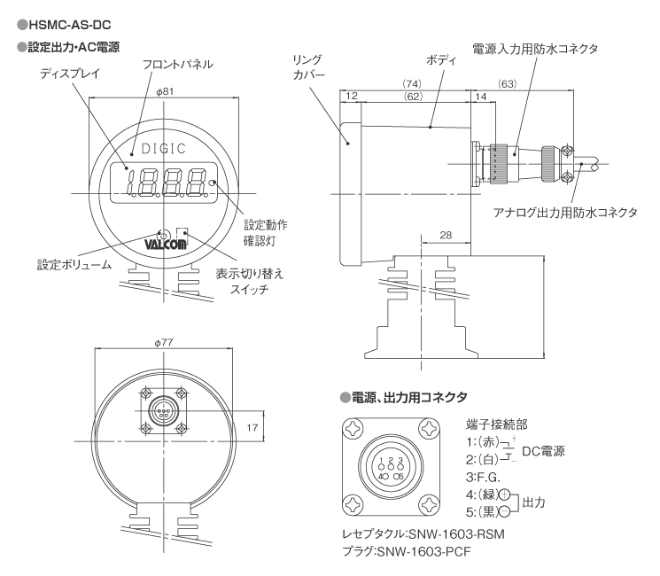 | 出力種類 | 4~20mA(2線式?4線式)、1~5V、0~5Vまたは1設定出力からご指定ください |