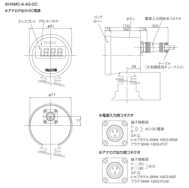 校正に関しては、ご発注時に上記型式選択⑤の「020、030=正圧側重視」or「021、031=負圧側重視」をご指定ください。(※3)付屬ケーブルについて:付屬ケーブルは大気解放用チューブ入りの特殊シールドケーブルのため、設定出力の負荷は30V以下でご使用ください。AC100V、200V回路では使用できません。結露しない狀況でのご使用では、大気解放用穴を開けて対応可能ですのでご相談ください。