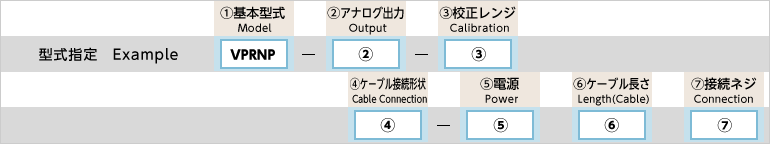 | 1.基本型式 | ○ | VPRNP | 低圧用アンプ內蔵圧力センサ(接液部SUS316L) ※接続ネジは下段7をご參照ください | |||