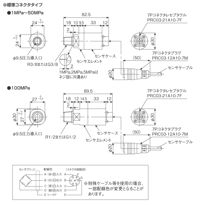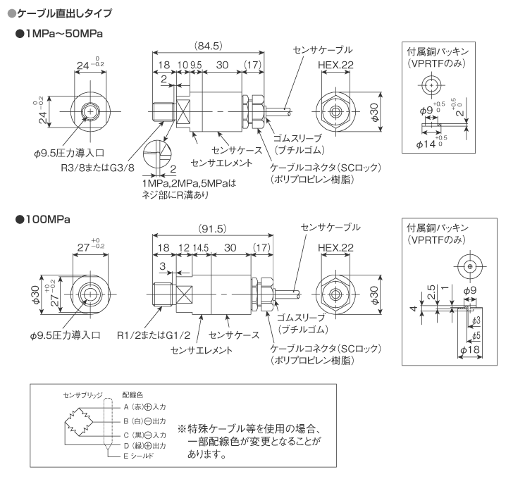 | VPRTF | 中高圧高精度タイプ圧力センサ ※接続ネジ:G3/8(100MPa:G1/2) | |||