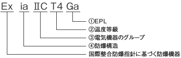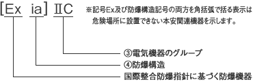 ia本質安全防爆構造の基準を満たしていることを表します。