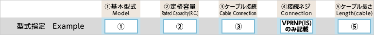 寫真①基本型式②定格容量③ケーブル