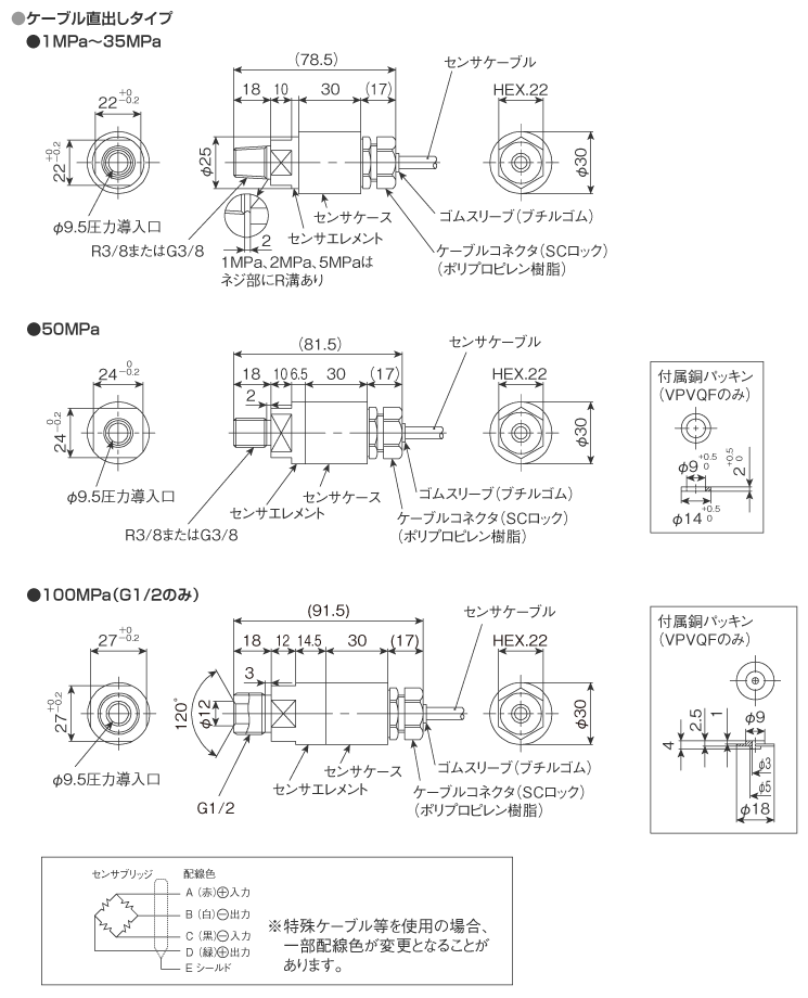 | VPVQF | 耐振型中高圧用エコノミータイプ圧力センサ ※接続ネジ:G3/8(100MPa:G1/2) | |||
