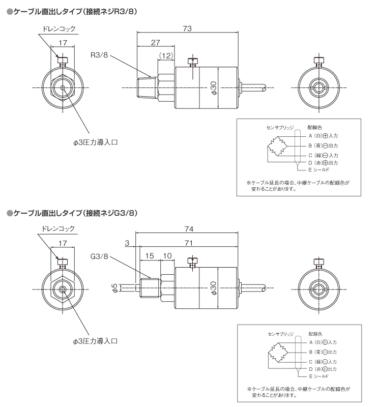 | ケーブル | 4芯シールドシリコンケーブル 3m直結 φ5mm |