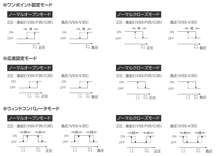 ※ウィンドコンパレータモード時、2つの設(shè)定ポイントが固定の応差設(shè)定値より小さい場合、スイッチ出力は動作しない場合があります。