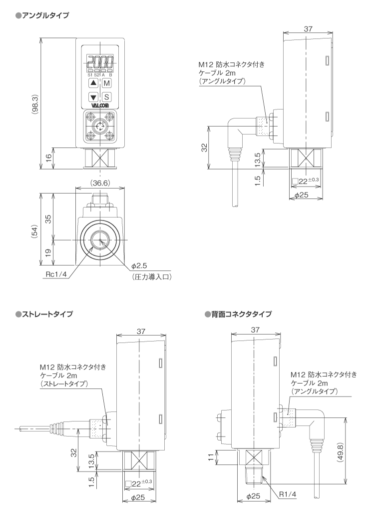 | 9.接続ネジ | C2 | Rc1/4(VTセンサのみ) | |||