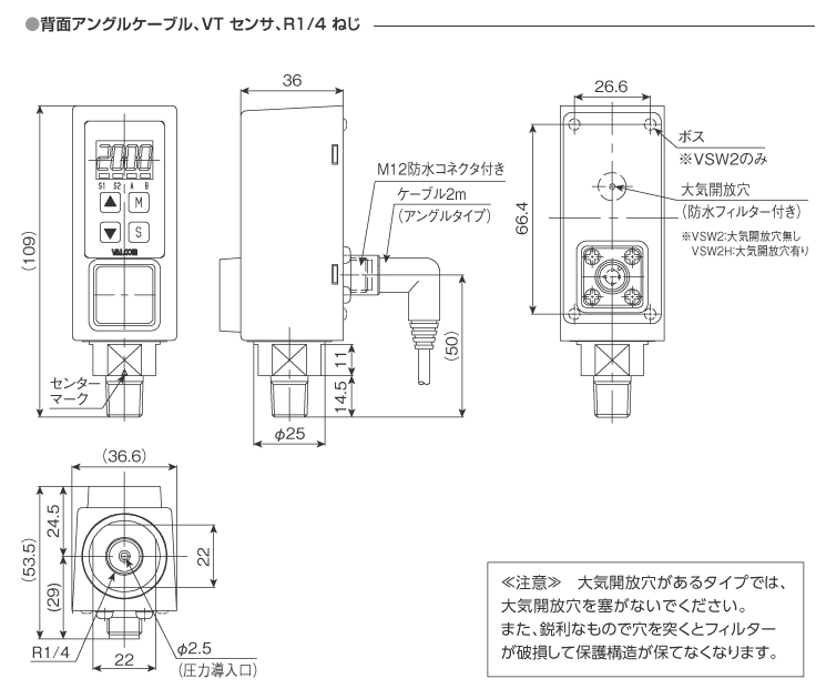 1.基本型式VSW2H高精度型 中?高圧小型デジタル表示付圧力スイッチ