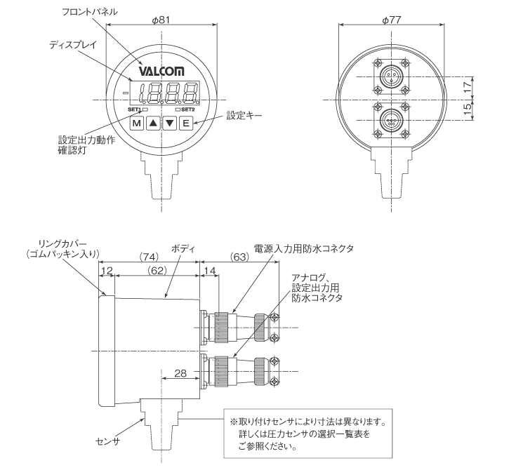 1.基本型式VSMCφ81 2設定出力?4~20mA出力搭載 丸形デジタル圧力計