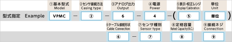 (例1)定格容量10MPaの圧力センサを組み合わせ0~5.00MPaの表示をしたい場合は(5.00MPa)とご指定ください。
