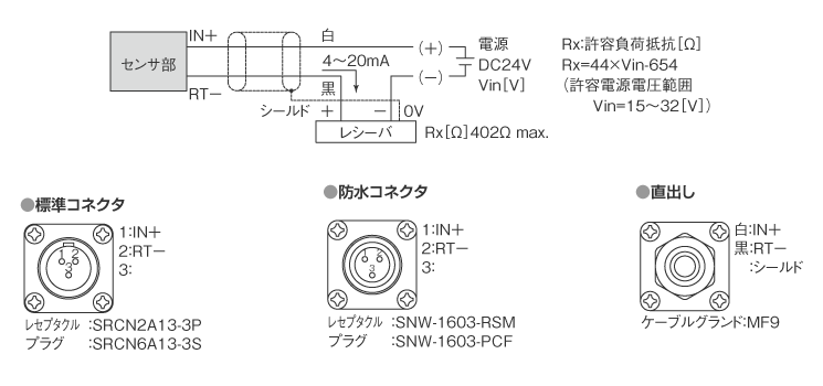 表示レンジは4mA側:-200~200digit、20mA側:100~1999digitの範囲內でご指定ください。