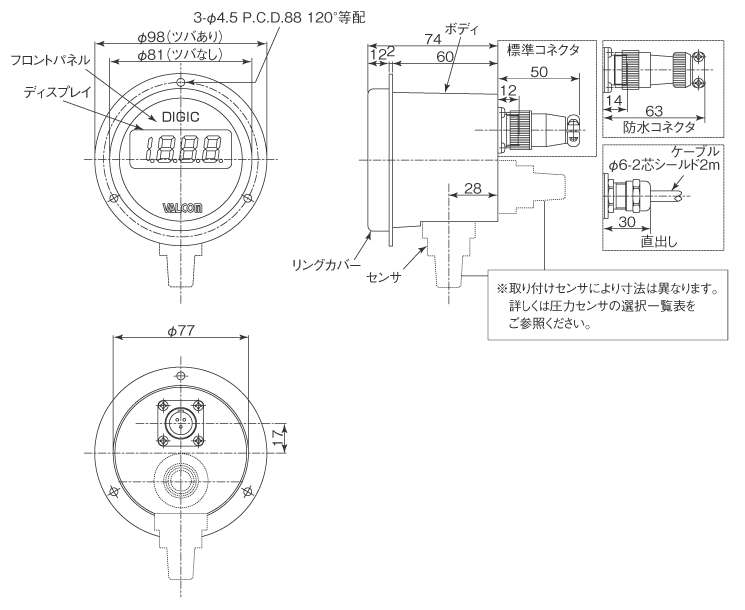 圧力センサの選択一覧表をご參照いただきご指定ください