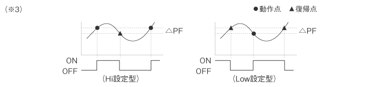 | 2△PF | 2応差=△PFあり 応差設(shè)定可変範(fàn)囲=センサ定格容量の10%以內(nèi) (※3)をご參照ください | ||||