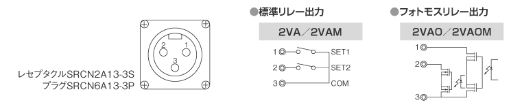 | 2VA | 2設(shè)定/リレー出力 | 6msec.以下 | AC/DC250V 4A | ||
