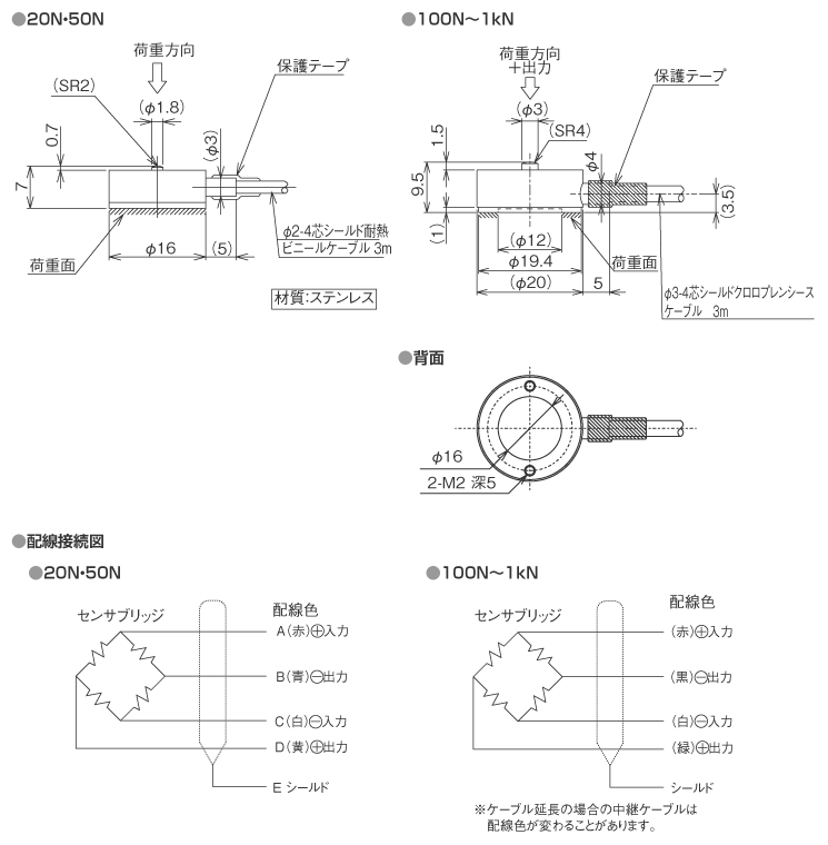 (100N~1kN:φ3mm 4芯シールドクロロプレンケーブル3m)