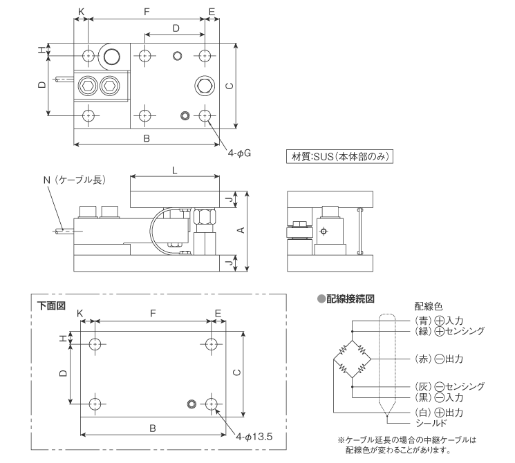 | ケーブル | PVC 6芯シールドケーブル 下表N寸法參照 |