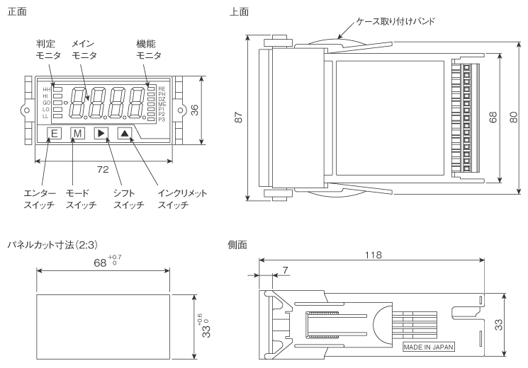 | 表示 | 7セグメントLED表示(文字高:約16mm) |