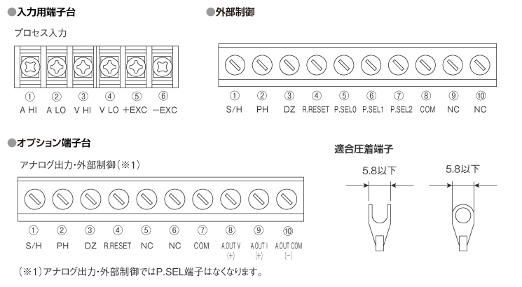 | 4.入力信號 | N | センサ供給電源24V 25mA | 1~5V or ±5V or 4~20mA or ±20mAの 4タイプ切換(スケーリング機能付) | |