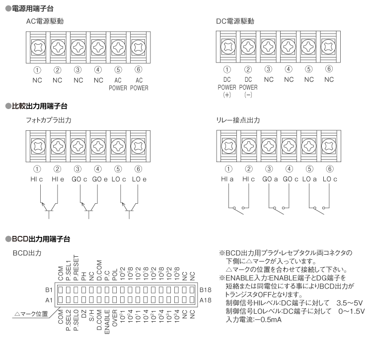 | デジタルゼロ | COM端子と短絡、または同電位によりデジタルゼロ機能ON |