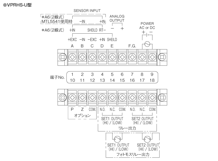 | 2S | 2設定/リレー出力 | 約60msec. (63%応答) | AC250V 4A | ||