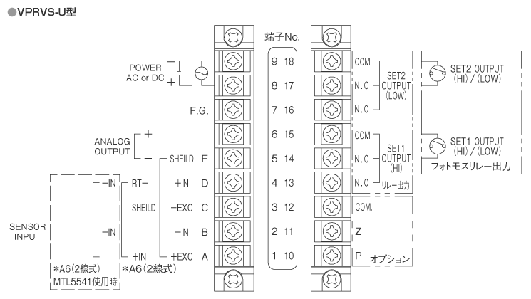 | 2SO | 2設定/フォトモスリレー出力 | 約50msec. (63%応答) | AC/DC250V 0.1A | ||