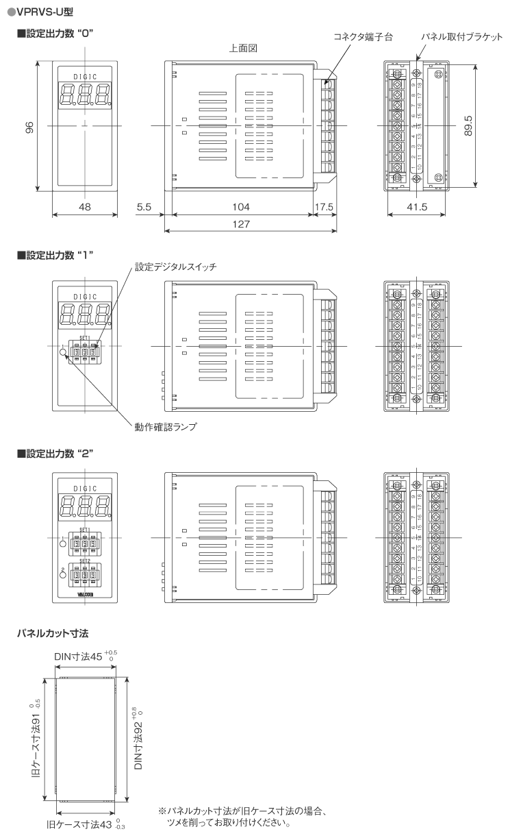 | 1.基本型式 | ○ | VPR | DIN48×96サイズ角型デジタルパネルメータ | ||
