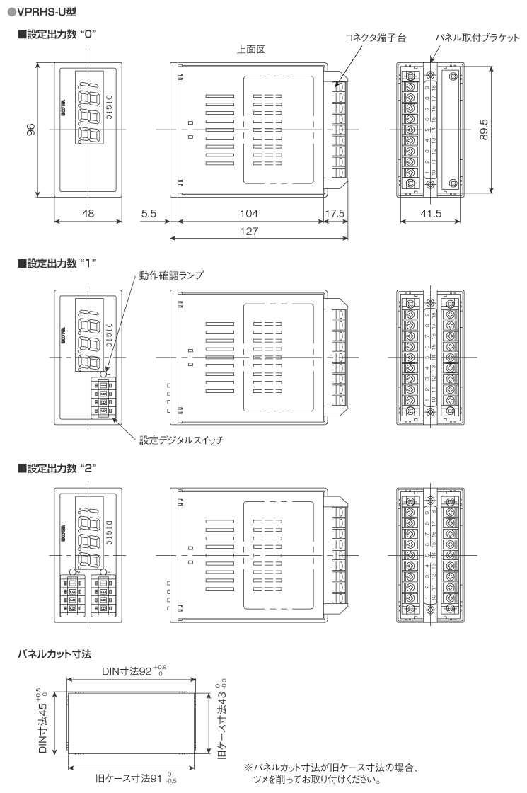 | 外形寸法 | 縦型:48(W)×96(H)×127(D:突起部含まず) 橫型:96(W)×48(H)×127(D:突起部含まず) |