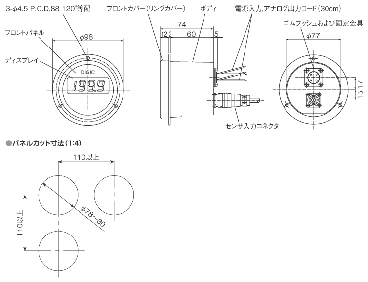外形寸法φ98×74(D:突起部含まず)